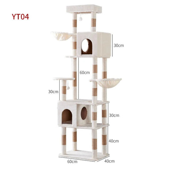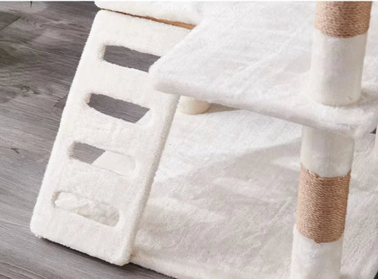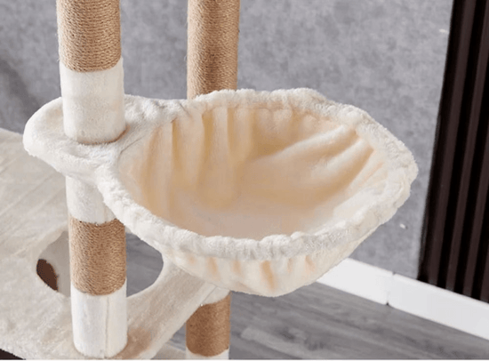 Arbre à Chat Blanc 185 cm avec Niches, Hamacs et Griffoirs en Sisal