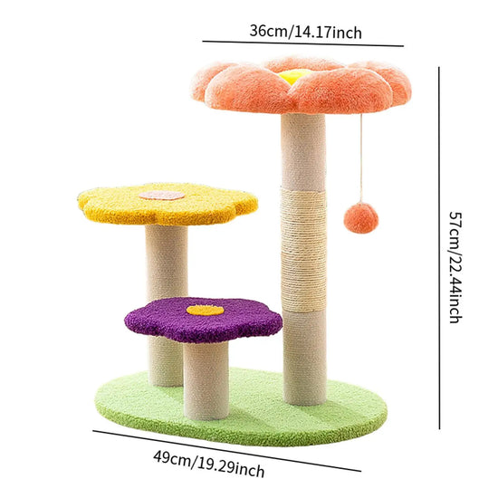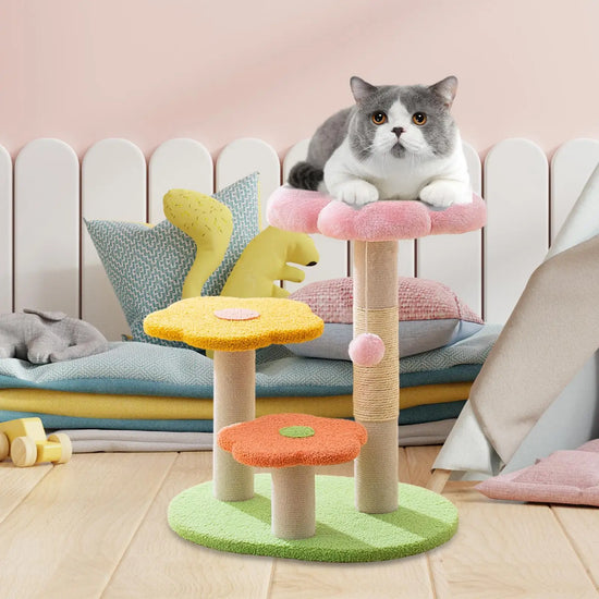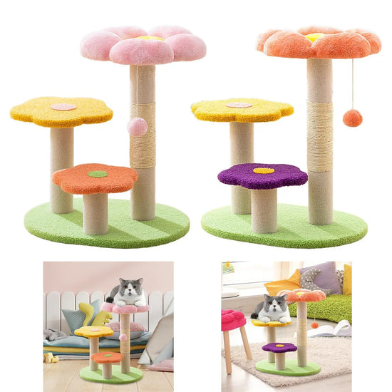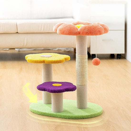 🌸 Arbre à Chat Fleur Coloré – Griffoir et Aire de Jeu Ludique pour Chaton