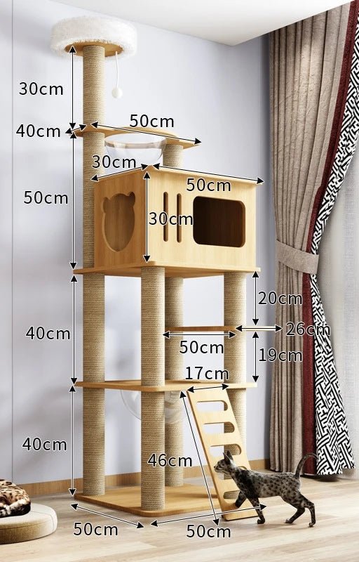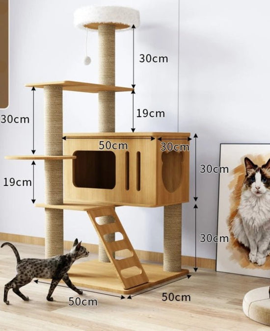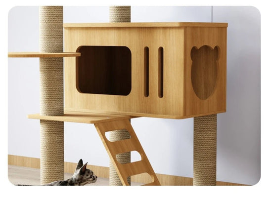 🐾 ARBRE À CHAT XXL en Bois Massif – Espace de Jeu, Repos et Confort Élégant