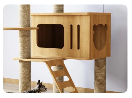 Utilisé au quotidien, cet arbre devient un véritable refuge familial pour chats, qu’ils soient joueurs, rêveurs ou câlins. Grâce à ses condos fermés tapissés de peluche douce, vos félins s’y sentiront en sécurité, comme dans un cocon. Les poteaux en sisal résistant invitent à des séances de griffades naturelles, tandis que les perchoirs spacieux leur permettent d’observer le monde en hauteur. Avec son design élégant et ses matériaux solides, il incarne durabilité et esthétisme dans votre maison.