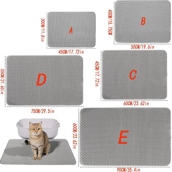 Conçu en EVA souple et résistant, ce tapis associe praticité et durabilité. Sa structure en nid d’abeille laisse passer la litière vers la couche inférieure, évitant qu’elle se répande partout. Facile à secouer ou à rincer, il sèche rapidement et reste propre au quotidien. Disponible en plusieurs couleurs modernes, il s’intègre discrètement à votre intérieur tout en offrant une solution efficace contre les désagréments. Plus qu’un simple tapis, c’est un allié hygiène et confort pour la maison et le bien-être de votre chat.